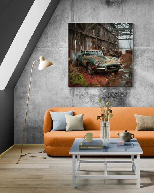 VINTAGE JAGUAR AND IN AN OLD FARM