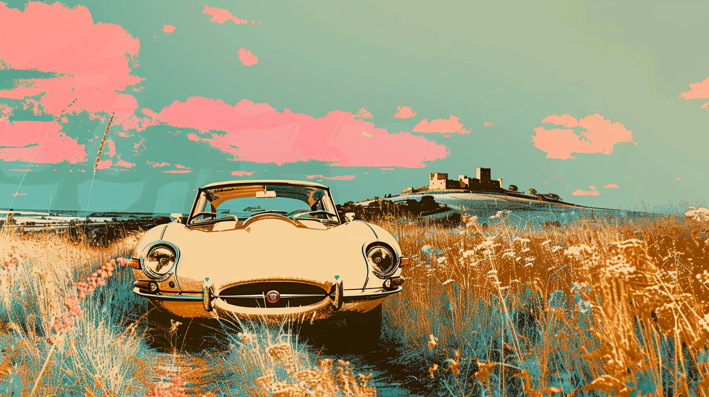 PANORAMIC - JAG E 1969 in A TUSCANY SUNNY LANDSCAPE